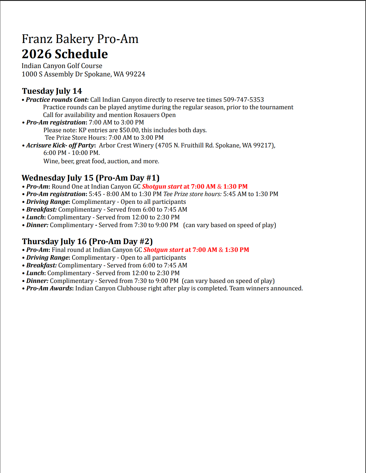 Starting Holes- 2025